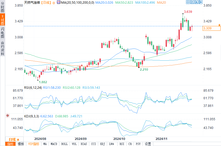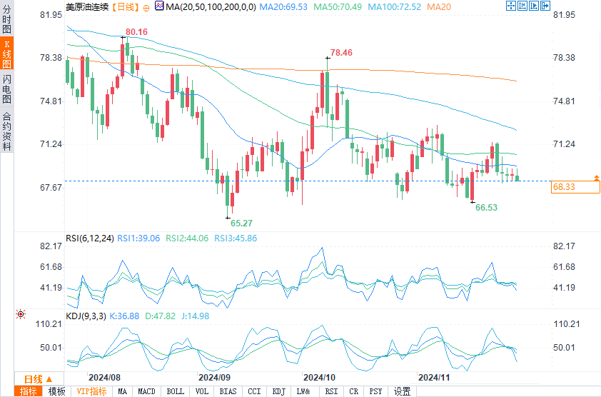 现货黄金报2661.96美元/盎司,涨幅0.92%。WTI原油报68.29美元/桶,跌幅0.43%。天然气期货报3.309美元/百万英热,涨幅3.28%。