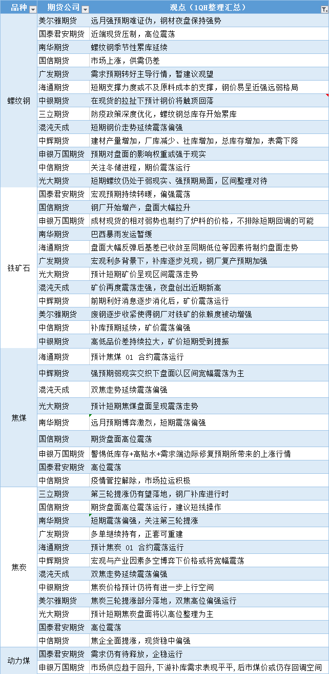 期货公司观点汇总一张图:12月9日黑色系(螺纹钢、焦煤、焦炭、铁矿石、动力煤等)