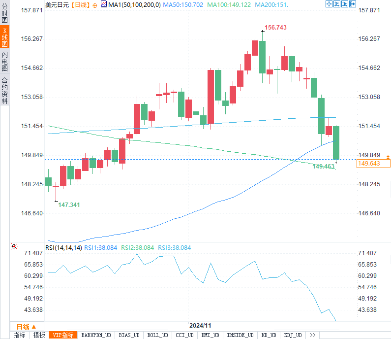 美元指数累计上涨1.78%,延续了特朗普胜选后的升势。市场预期新政府将推行放松商业监管与财政刺激政策,美元因此受益。但美元走强也部分抑制了日元和欧元的升幅。