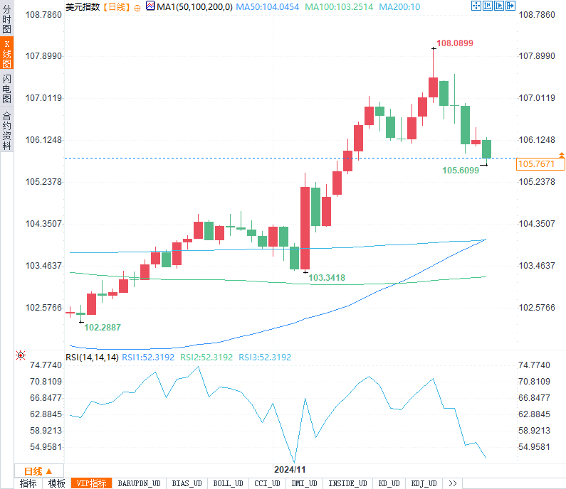 美元指数周五下跌0.31%,报105.74,盘中一度触及105.61的11月12日以来低点。尽管如此,11月