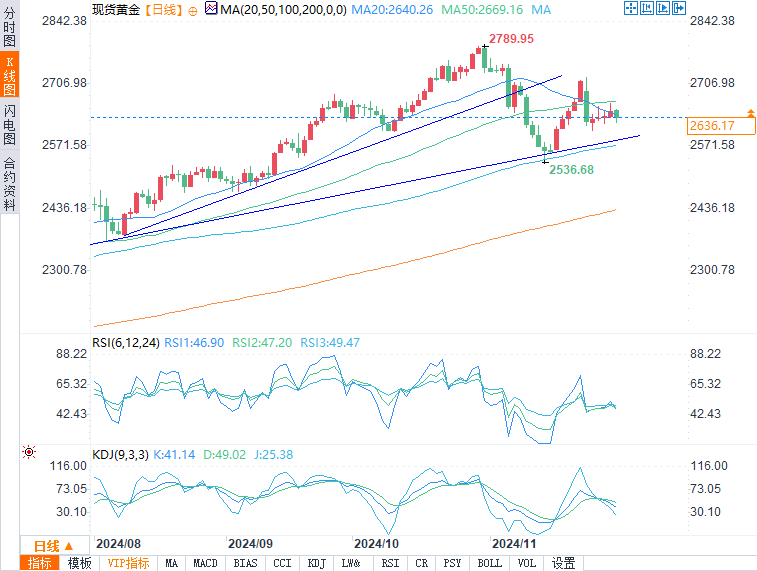 现货黄金报2635.96美元/盎司,跌幅0.54%。