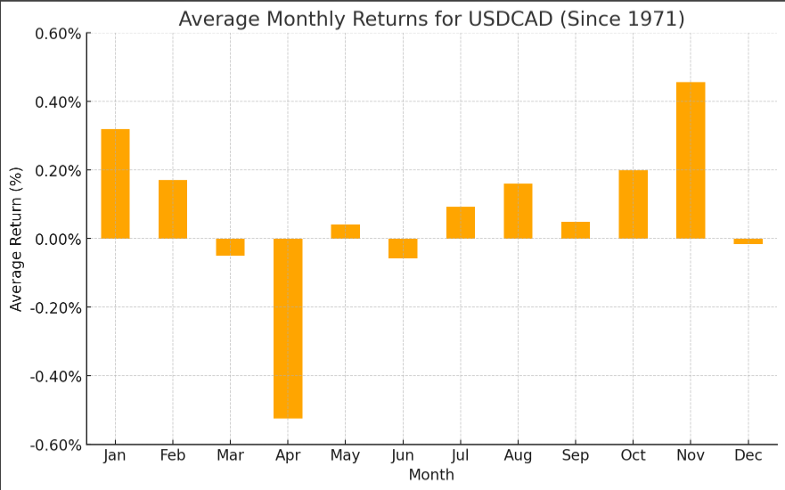自1971年以来,12月美元/加元一直温和看跌,历史平均回报率为-0.02%。去年11月,该货币对曾一度升至4.5年高点,随后回落至1.40,因此,如果我们没有看到新的看涨催化剂出现,那么暂停或小幅回调将是有意义的。