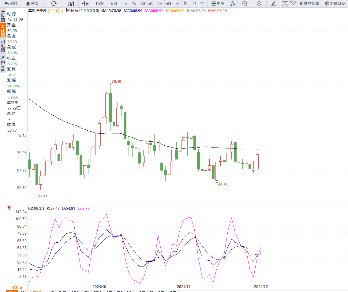 美原油亚盘时段延续昨日上涨,交投于70.00美元/桶附近,由于以色列威胁说如果与真主党的休战协议破裂,黎巴嫩将重燃战火使得市场对于供给端的压力情绪再次点燃。