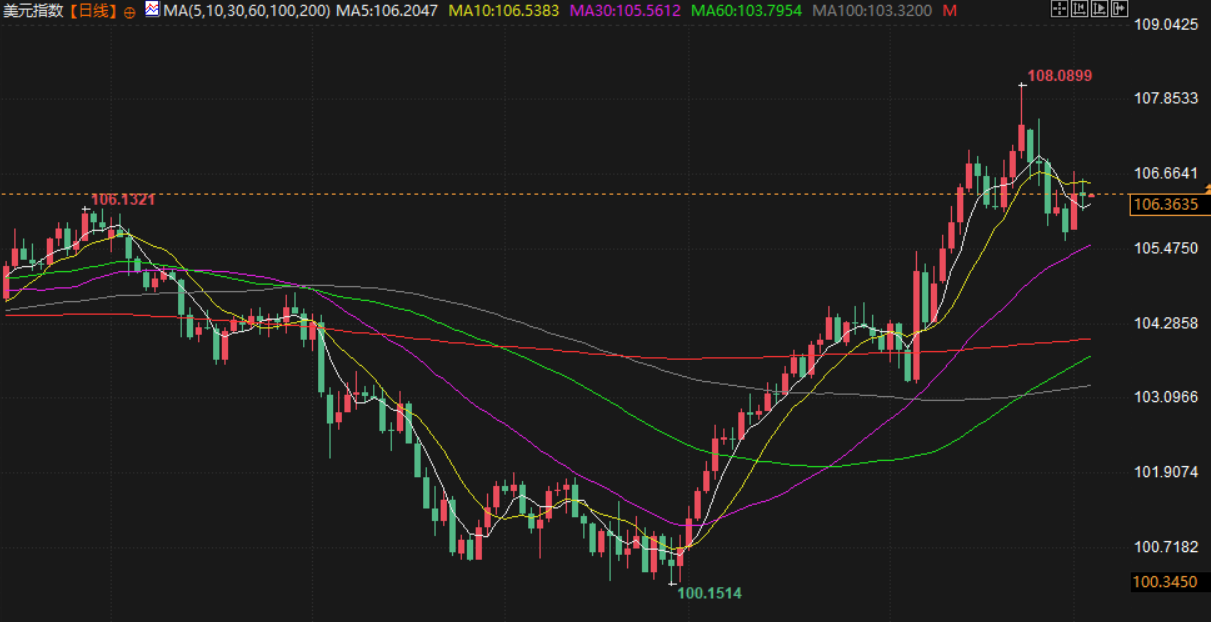 美元指数周二基本持平,当日微跌至106.33。美国劳工部统计局称,截至10月最后一天,衡量劳动力需求的职位空缺增加了37.2万个,至774.4万个,美元随后缩减了跌幅。根据伦敦证券交易所集团(LSEG)计算,美国联邦基金利率期货价格显示,本月降息25个基点的可能性为 70%,暂停降息几率为 30%,与周一晚间相比变化不大。美联储官员们周二表示,他们仍然认为通胀率正在向2%的目标回落,并表示支持未来进一步降息。