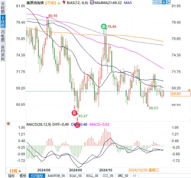美原油期货上涨1.04%,报68.81美元/桶。尽管日内涨幅可观,但原油市场整体依然受到供需前景的不确定性制约。