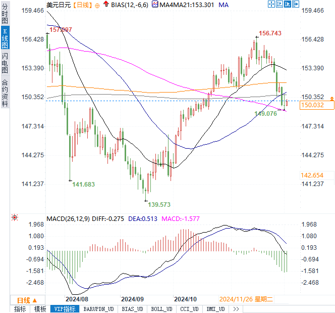 美国10年期国债收益率接近10月末的低点,显示市场对美联储降息预期的信心日益增强。与此同时,日本国债收益率也在本月加息预期中维持高位,但波动范围有限,显示市场等待央行政策的明确信号。