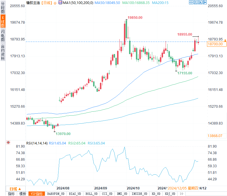 橡胶价格今日持平,表现平淡。市场对未来需求的悲观预期以及全球经济放缓的担忧持续压制价格表现。不过,产地降雨及原材料供应偏紧的消息为价格提供了一定支撑。