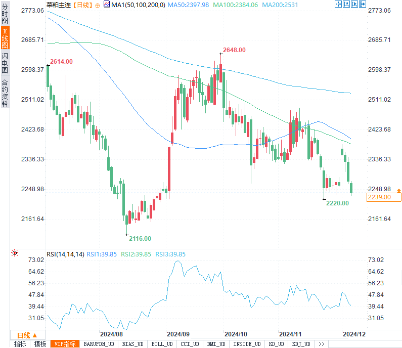 今日期货市场整体表现弱势,多数品种受到供需错配或宏观情绪的压制。随着年底临近,市场将进入季节性调整阶段,各品种走势分化可能进一步加剧。在宏观层面,需密切关注美联储政策路径、国际原油价格及国内经济刺激政策对市场的潜在影响。