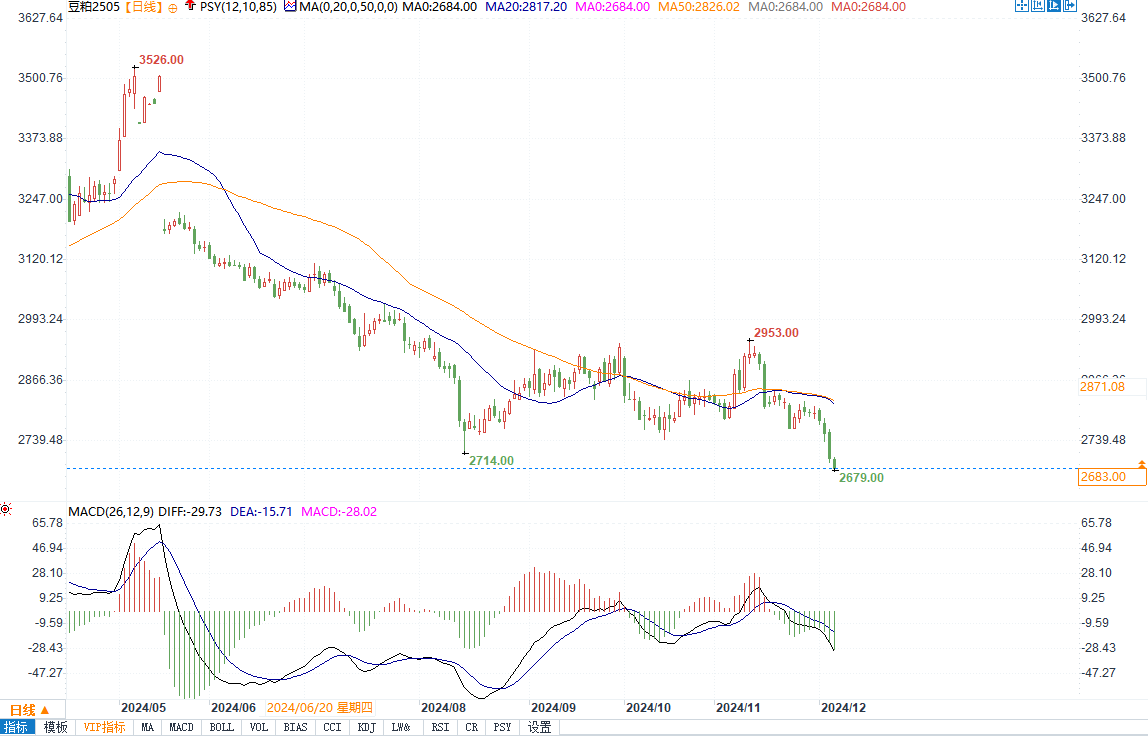 欧盟数据显示,截至2024年12月初,大豆进口同比增长12%,豆粕进口激增29%。这一趋势表明全球市场对豆粕的需求依然强劲,尤其在欧洲市场。欧盟棕榈油进口下降,可能进一步推动豆粕在饲料和生物燃料领域的应用,这在中长期内将对豆粕价格形成支撑。