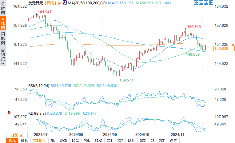 美元/日元在周二连续第三个交易日收盘于149.55附近后,再次推动收盘价高于150.00和200日指数移动均线(EMA)。