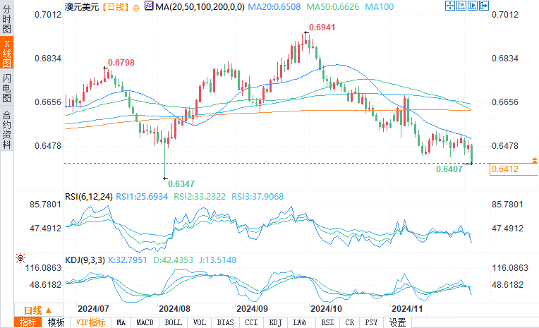 周三,澳元/美元汇率跌至四个月低点0.6450,此前令人失望的GDP数据加剧了人们对澳洲联储可能降息的预期。