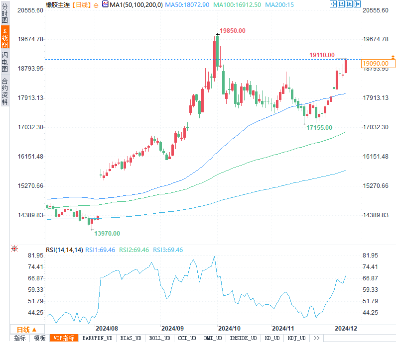 橡胶期货微幅上涨,供应端的泰南洪水因素继续对产量形成扰动,现货市场原料价格维持高位。不过,国内库存小幅增加且轮胎企业开工率走低,需求端表现疲软,限制了涨幅。从盘面看,短期橡胶价格或维持偏强震荡,但冲高回落的可能性依然存在,需警惕库存累积带来的下行压力。