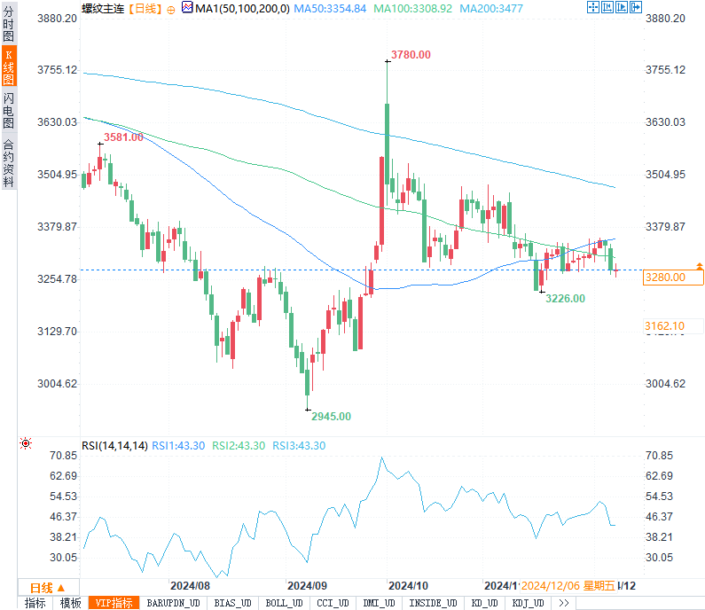 螺纹钢期货本周跌幅较大,市场主要担忧需求持续低迷。随着天气转冷,北方工地停工现象增多,叠加地产需求恢复不及预期,钢材终端消费显著下滑。同时,供应端的高开工率进一步加剧库存压力。短期来看,螺纹钢价格或维持弱势震荡,关注钢厂检修计划及库存变化带来的边际改善。