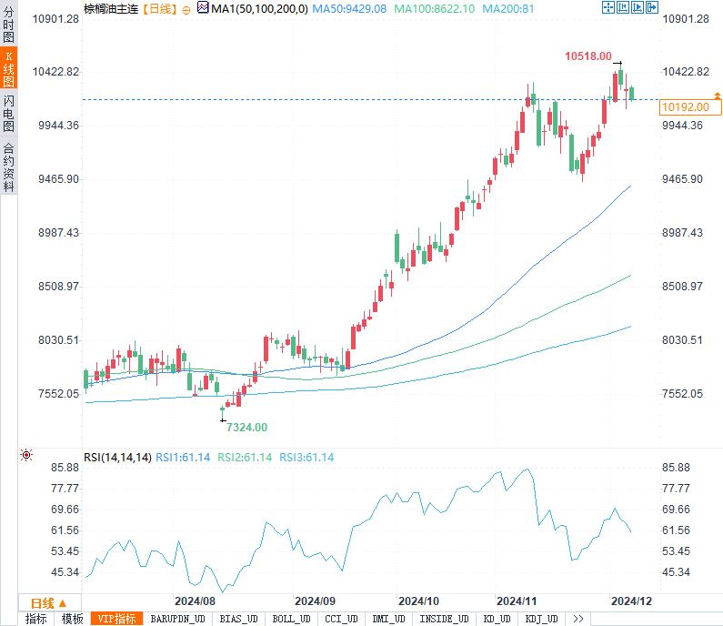 近期棕榈油市场主要受到国际原油价格波动以及东南亚供应变化的影响。印尼降雨对棕榈油产量形成一定压制,而需求端因传统节日备货需求略有支撑。然而,中国进口量因库存高位有所减少,限制了价格反弹空间。技术面来看,棕榈油期货在近期高点处回落,市场情绪偏谨慎。预计短期内棕榈油期货价格将维持区间震荡,但不排除在原油反弹或东南亚供应进一步缩减时出现短暂上行的可能。