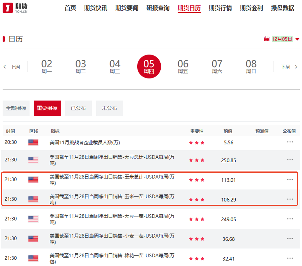 市场普遍预期,明年初新玉米集中上市期,价格或因供应压力震荡,同时市场密切关注极端天气对产量和物流的影响、养殖端产能去化速度等因素。