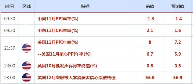 欧元兑美元周四收盘上涨0.5%,收报1.0554,而英镑兑美元上涨0.2%;美元兑日元基本持平。投资者还在等待周五的美国11月生产者价格数据(PPI)和美国12月密歇根大学消费者信心指数初值,而美国月度消费者通胀数据将于下周公布,在美联储12月14日政策会议的前一天。通胀数据对于确立货币政策的长期预期可能至关重要。