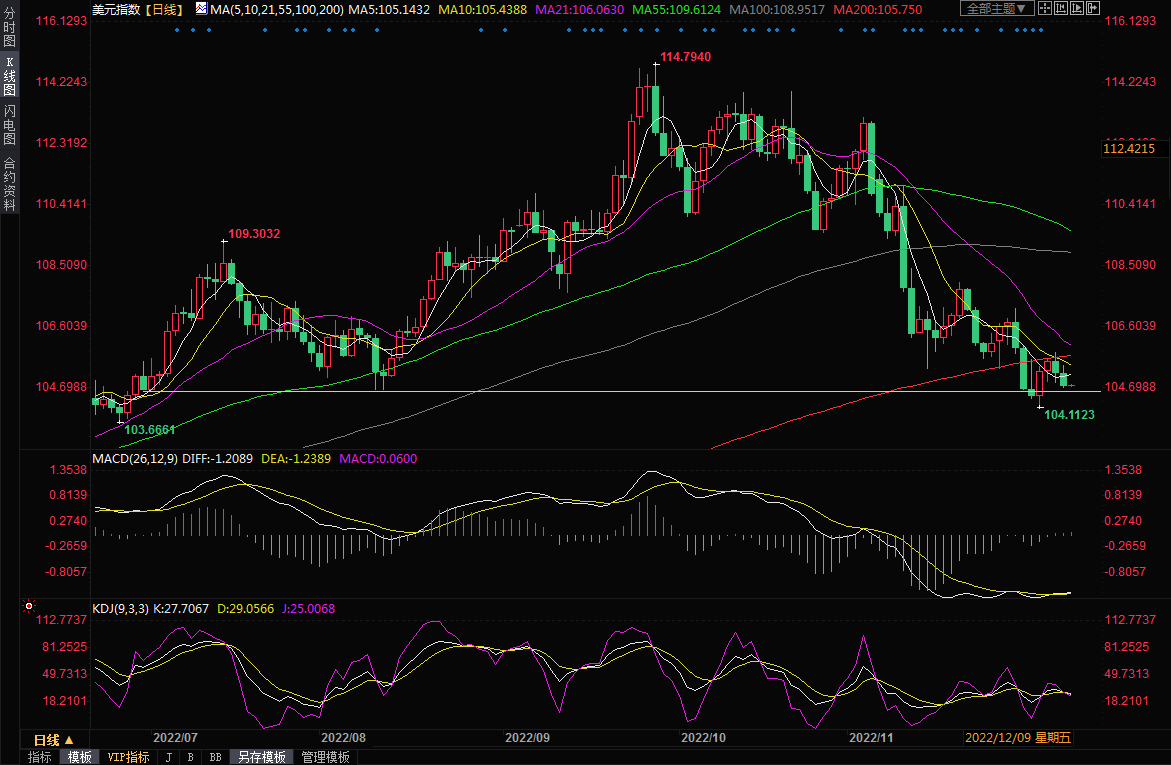 美元指数下跌0.37%,失守5日均线,使得汇价跌至所有均线下方,均线接近空头排列,因对美联储将放缓加息步伐的预期持续打压美元,投资者需要提防美元的进一步下行风险;下周将迎来美国11月份通胀数据和美联储利率决议,市场交投相对谨慎,因投资者需要权衡美联储的政策前景和利率上升导致经济衰退的可能性。