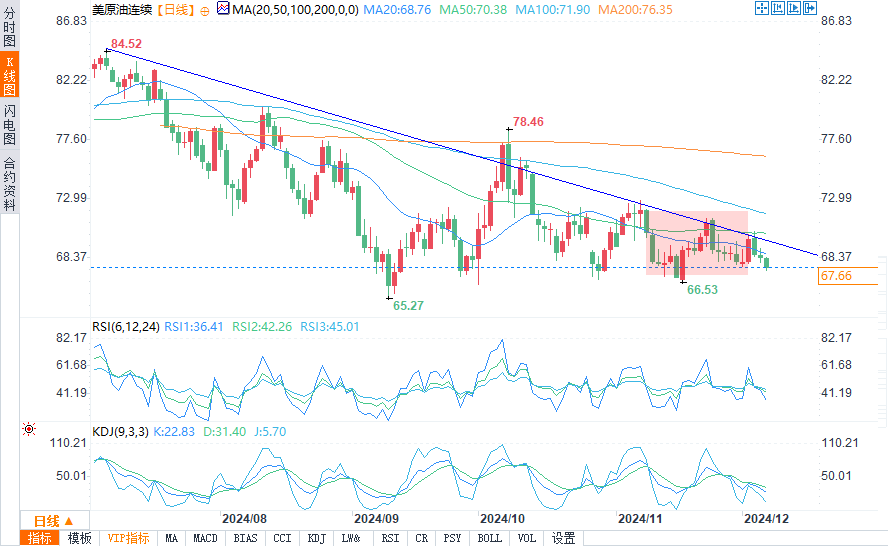 预计今天的交易区间在66.60美元的支撑位和69.60美元的阻力位之间。