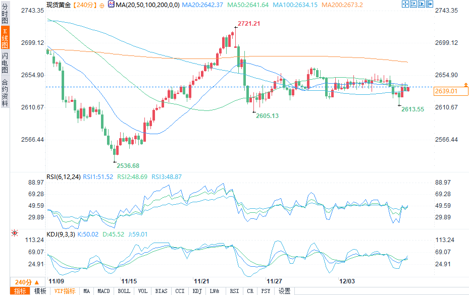 现货黄金报2637.76美元/盎司,涨幅0.23%。美国黄金期货报2661.8美元/盎司,涨幅0.51%。