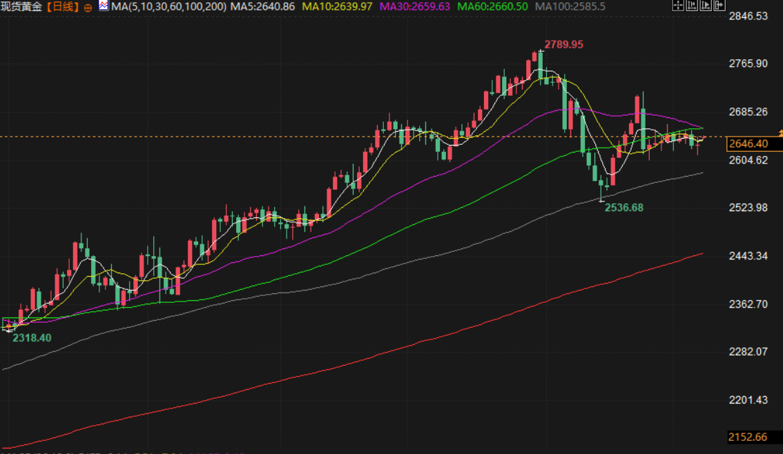 现货黄金交投于微涨,交投于2643.53附近,受益于周末叙利亚局势加剧市场担忧情绪,推升避险买盘,叙利亚总统巴沙尔遭反对派武装推翻,搭机逃离后下落不明,据悉,逃到了俄罗斯;