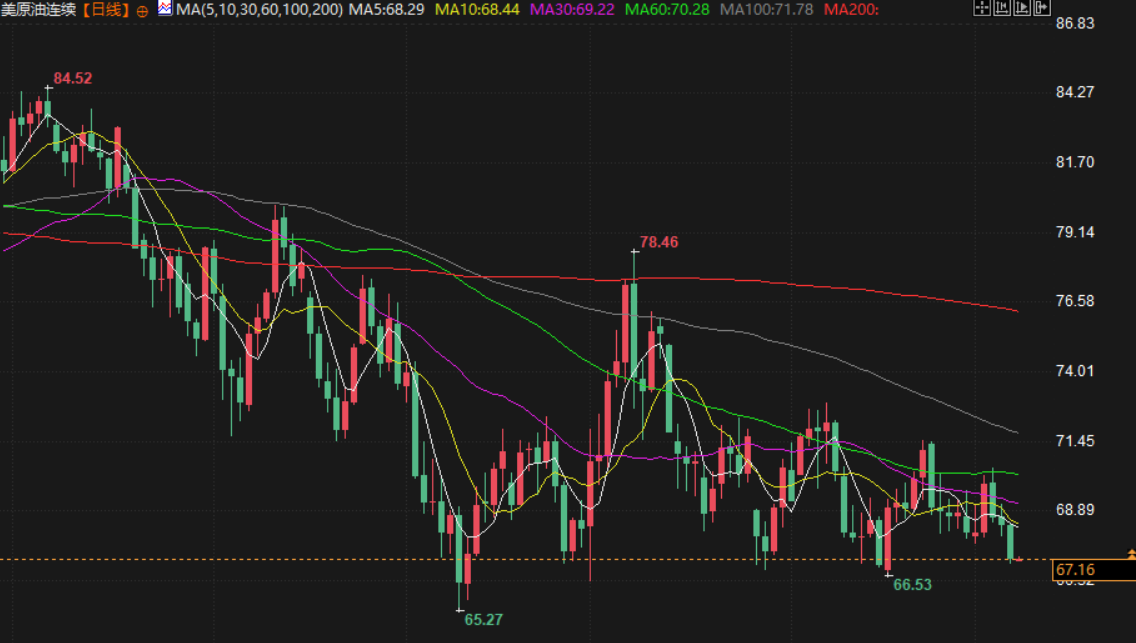 美原油交投于67.15美元/桶附近,尽管OPEC+决定推迟增产并将深度减产行动延长至2026年底,但明年需求疲软担忧仍存。