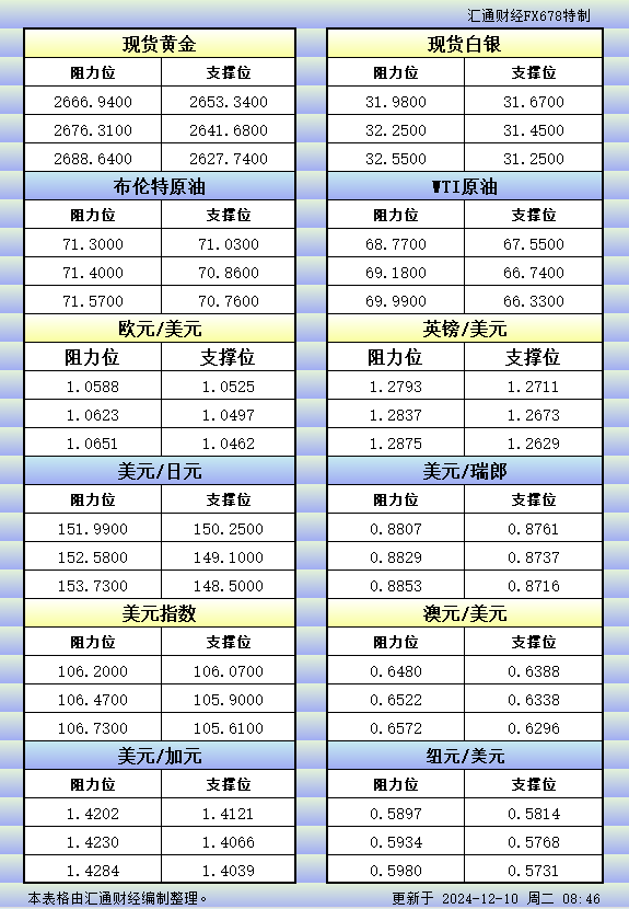 标题:12月10日亚市更新的支撑阻力:金银原油+美元指数等八大货币对