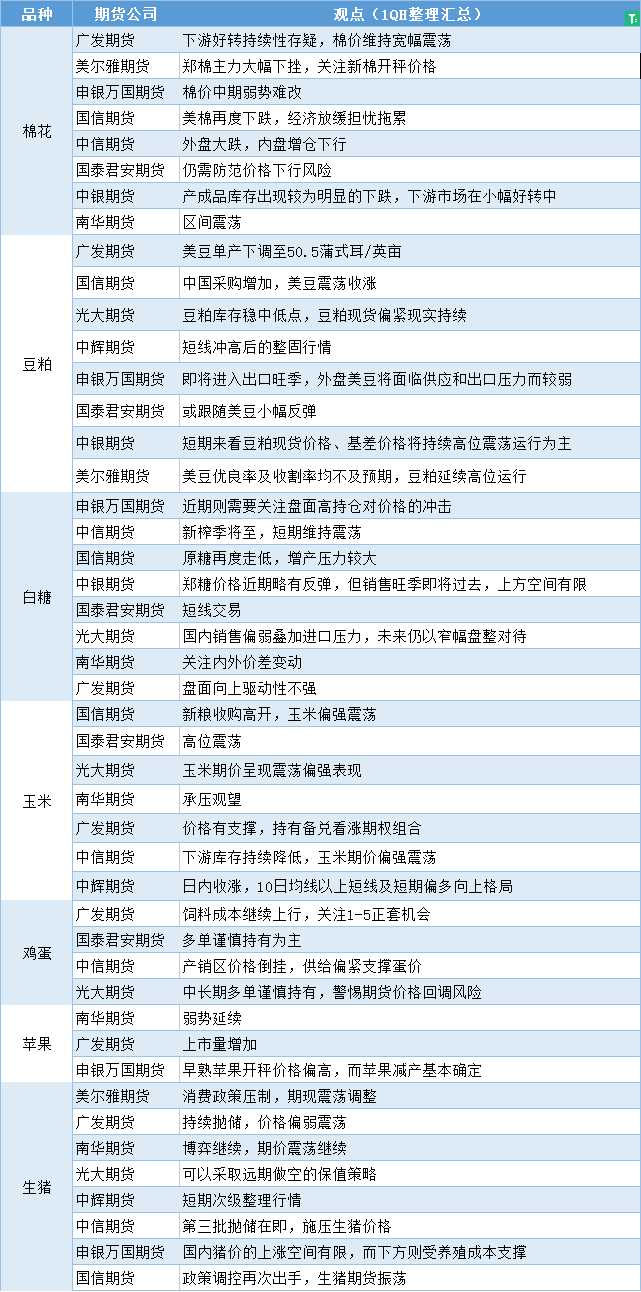 标题:期货公司观点汇总一张图:9月20日农产品(棉花、豆粕、白糖、玉米、鸡蛋、生猪等)