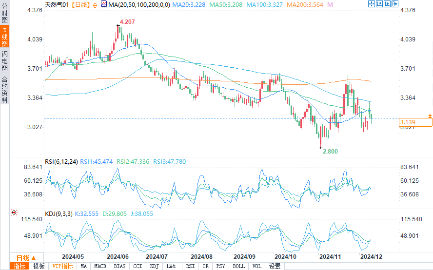 从技术上讲,天然气期货已经回到关键支撑位。纽约商品交易所1月合约正在测试50日移动均线3.104美元/百万英热和50%回撤位3.118美元/百万英热。如果持续跌破这些水平,可能会将价格推向2.993美元/百万英热的斐波那契水平,分析师认为这是进一步抛售压力的关键点。