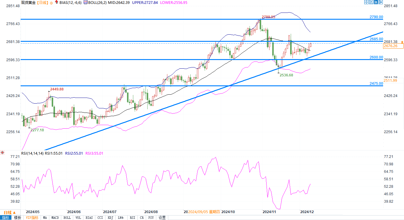 现货黄金报2679.00美元/盎司
