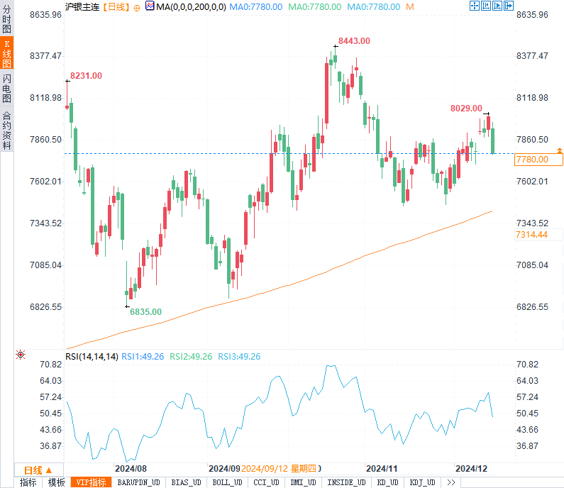 汇通财经APP讯——周五(12月13日),国内商品期货市场整体延续震荡态势,多数品种下行,但部分油脂类商品表现较为坚挺。数据显示,螺纹钢跌0.97%,沪银跌1.95%,豆粕跌0.98%,棕榈油涨0.91%,燃料油涨0.5%,菜粕跌1.23%,PVC跌0.20%,菜油跌1.61%,橡胶跌1.89%,热卷跌1.26%。市场情绪受到多方面因素影响,包括宏观政策信号、外盘动向及品种自身基本面变化。以下是各主要品种的具体分析。