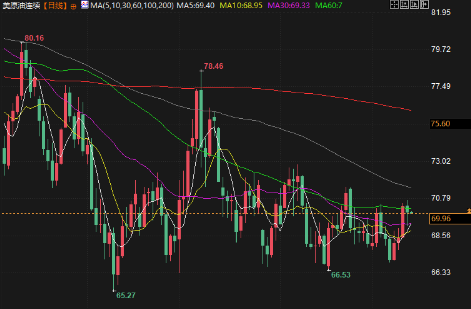 美原油交投于69.93美元/桶附近,尽管受到对美联储降息预期升温的支撑,但更受供应充足的预测打压。