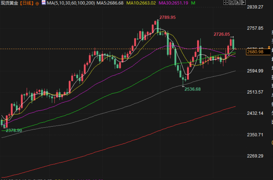 现货黄金交投于2680.41附近,投资者在金价触及五周高点后获利了结,并在下周美联储会议召开前平仓,限制了金价的涨幅,