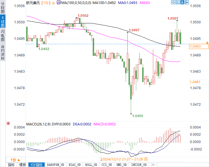 欧元兑美元:当前汇率为1.0489,下跌0.0006,跌幅为0.06%。