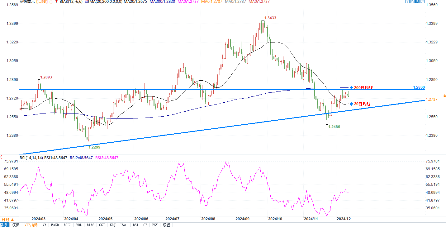 12月12日周四,英镑在伦敦交易时段兑美元小幅走高,但仍难以突破1.2800的关键阻力位。随着市场对美联储在下周货币政策会议上降息的预期增强,