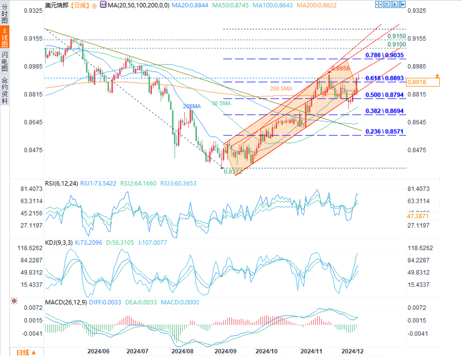 美元/瑞郎多头回归并试图保持