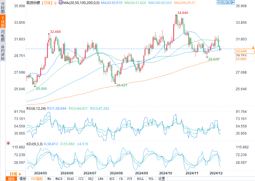 阻力位控制银价银价目前在30.98 - 31.29美元的重要阻力位下方交易,若上破该区间可能引发进一步上涨。上行目标包括50日移动均线31.65美元。下行方面,交易商正关注关键支撑位,包括11月28日低点29.64美元和200日移动均线水平29.54美元,后者仍是维持银价看涨势头的关键阻力位。