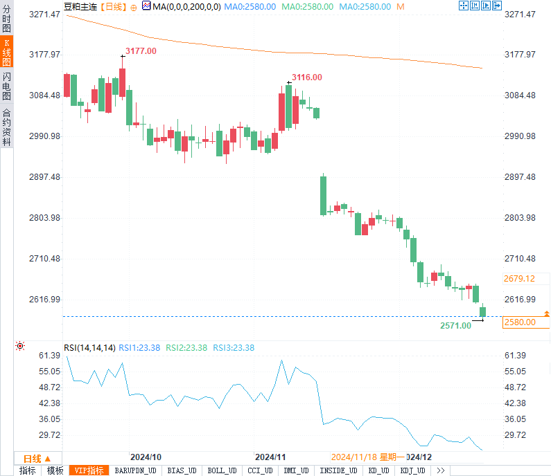 豆粕期货今日跌幅较大,主要受到供应端宽松预期影响。南美大豆产量恢复趋势确立,巴西产区天气条件持续改善,播种进度理想。此外,国内压榨量高企,大豆库存持续回升,饲料需求增长有限,使得供需格局趋于宽松。