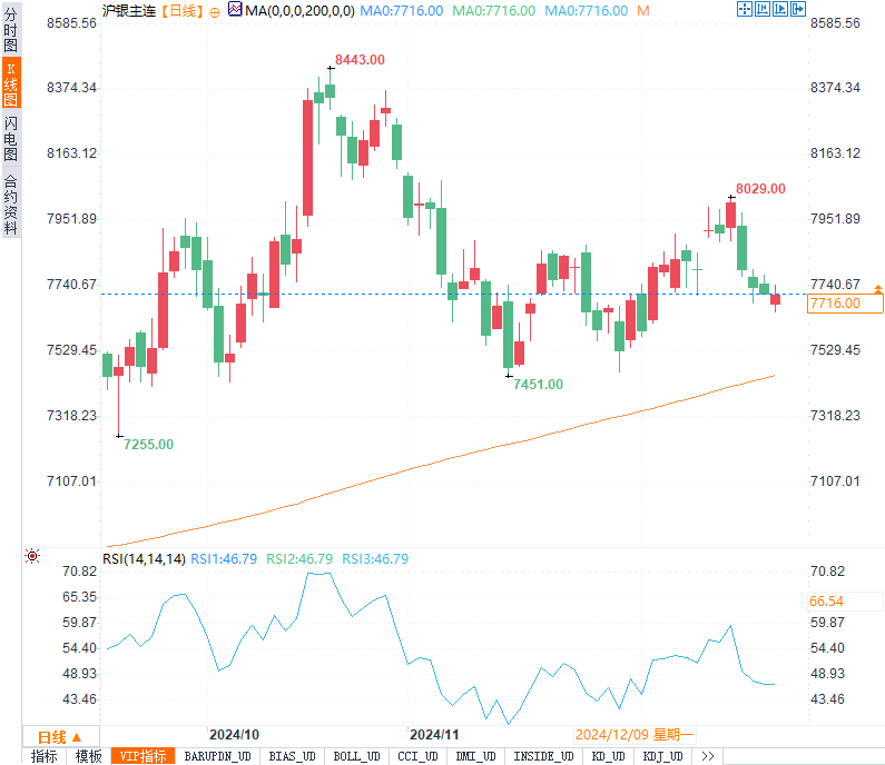 白银期货今日小幅下跌,贵金属市场整体维持震荡。美联储12月议息会议临近,市场观望情绪浓厚,同时美国11月CPI数据符合预期,对贵金属市场的支撑作用有限。