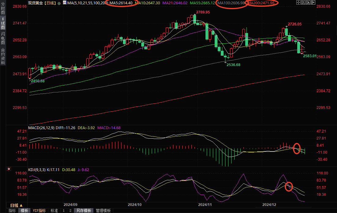 投资者在等待周五公布的核心 PCE 数据(美联储首选的通胀指标),以进一步了解经济前景的线索。市场预计该指数将显示,11月整体和核心PCE物价指数环比均上涨0.2%,同比涨幅料分别为2.5%和2.9%(前值分别为2.3%和2.8%),该预期偏向继续压制金价。技术面来看,金价连续两天收盘于100日均线和2600关口下方,周四反弹受阻后回落暗示上方卖盘较强,MACD和KDJ死叉运行,