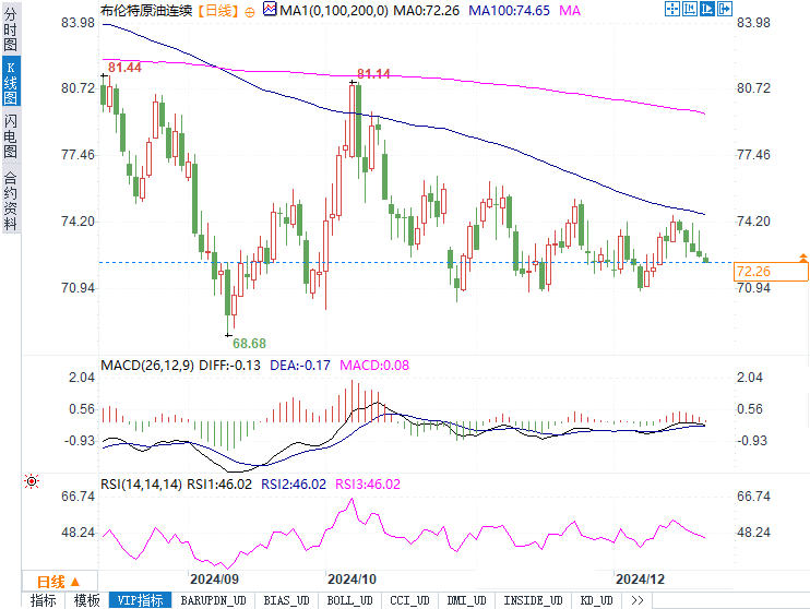 布伦特原油可能测试72美元/桶的支撑位,而WTI原油则可能在68美元/桶附近找到支撑。