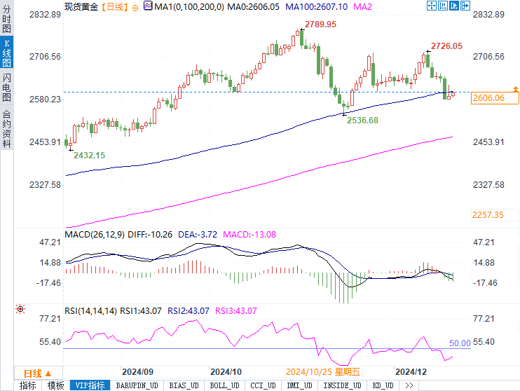此外,美国政府停摆的风险仍然未解,市场对于未来经济前景的不确定性增强,这也为黄金提供了避险需求的支撑。综合来看,尽管黄金价格目前维持在2600美元上方,但市场情绪仍显谨慎,投资者更倾向于等待关键经济数据的发布。