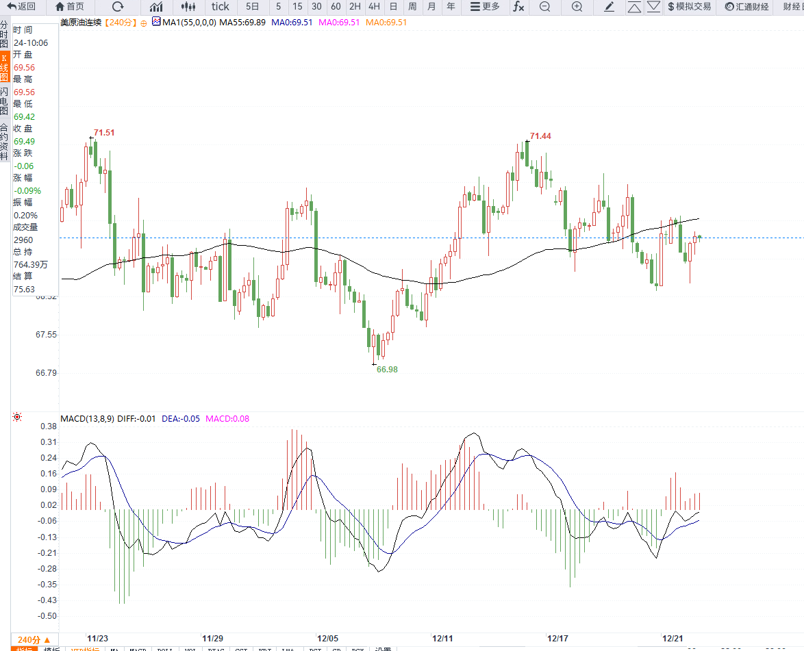 美原油亚盘时段小幅上涨,交投于69.51美元/桶附近,基本面上市场进入圣诞假期模式,交投清淡,且本周EIA库存将于周四公布,短期维持区间对待。