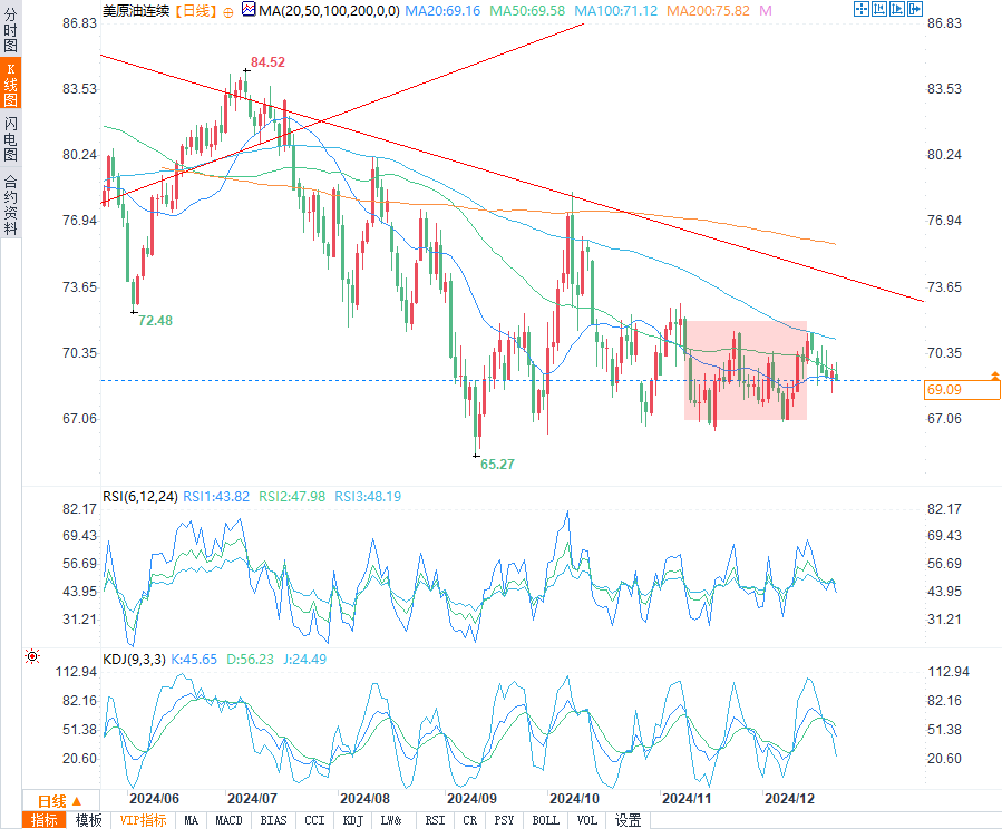 尽管担心供应过剩,但油价保持稳定油价在稍早上涨后企稳,受低于预期的美国通胀数据支撑。美国通胀数据缓解了美联储近期降息后的担忧。然而,假日前交易清淡导致价格逆转,美元走强加剧了这种逆转。美元触及两年高点,令原油承压,并抵消了最初的价格涨幅,原油期货价格目前小幅走低。