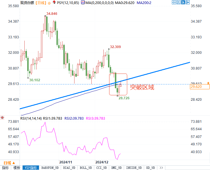 美元指数的短暂回落对白银构成了支撑(截至目前