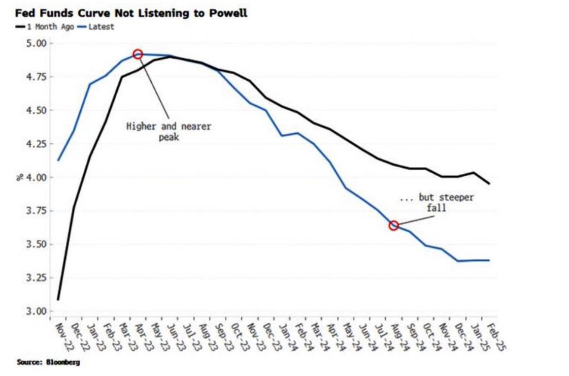 目前,美联储与金融市场押注之间最大的分歧,其实是在明年是否会降息的话题上。金融市场同意美联储近期放缓加息步伐的愿景,但认为明年晚些时候利率将从峰值迅速回落(即降息)。而美联储官员们则一直在传达政策利率可能会在一段时间内保持在峰值水平的信息。这一分歧的走向很可能将成为本周利率决议的“重头戏”。