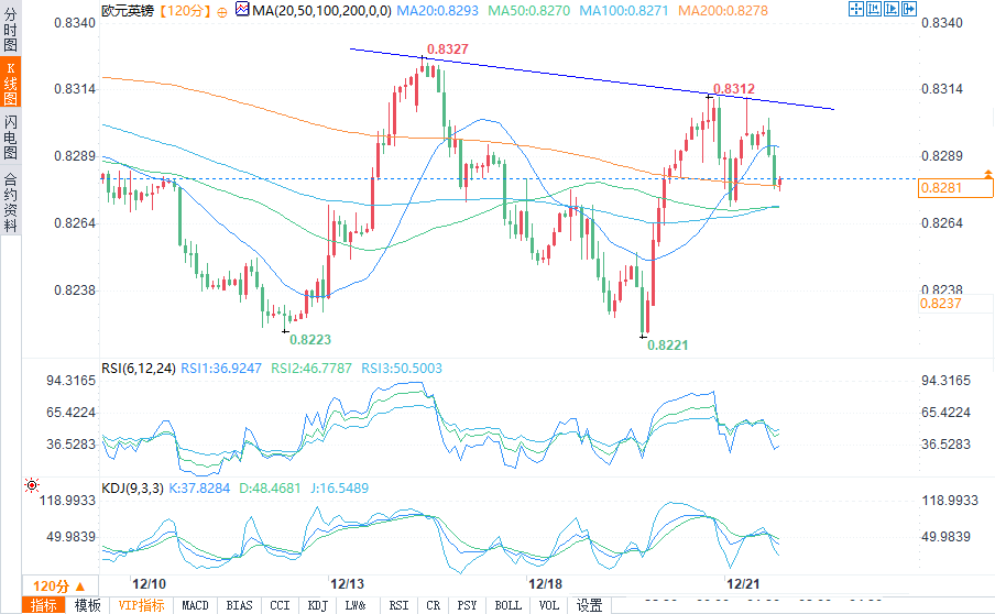 欧元/英镑报0.8283/84,看跌情绪在轴心点0.83118下方盛行。这一水平附近的下行趋势线继续作为一个重要的阻力位,限制任何上升的势头。