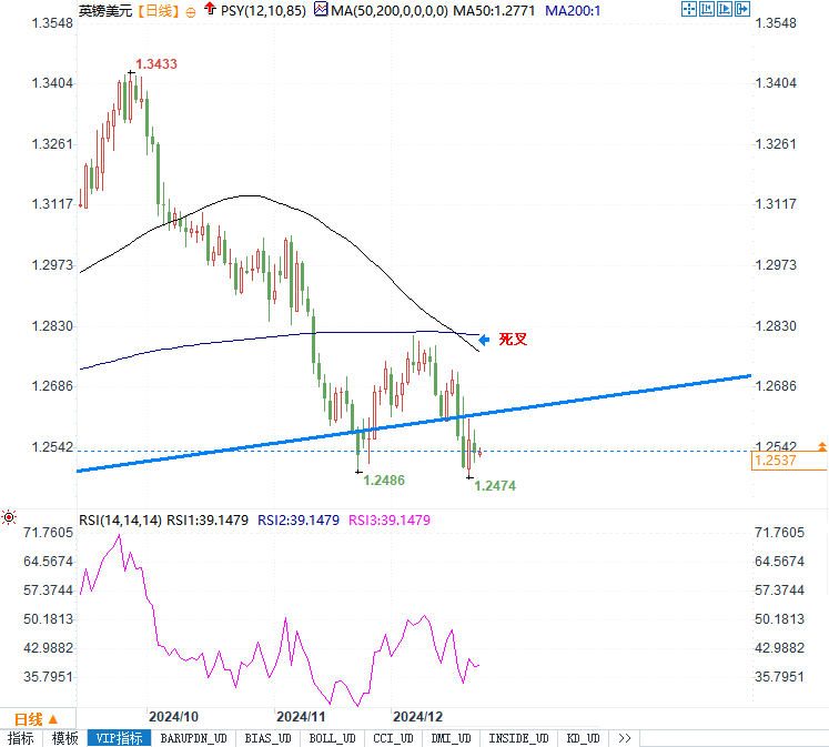 英镑兑美元交投于1.2500心理支撑位上方。由于圣诞节日假期(周三和周四)的影响,本周交易量清淡,