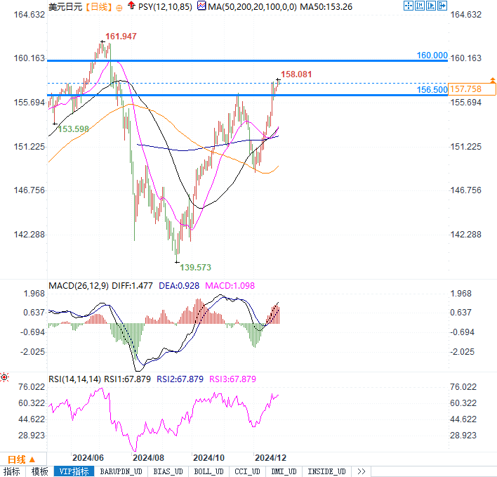 美元兑日元目前逼近160关口,这一心理阻力位至关重要。