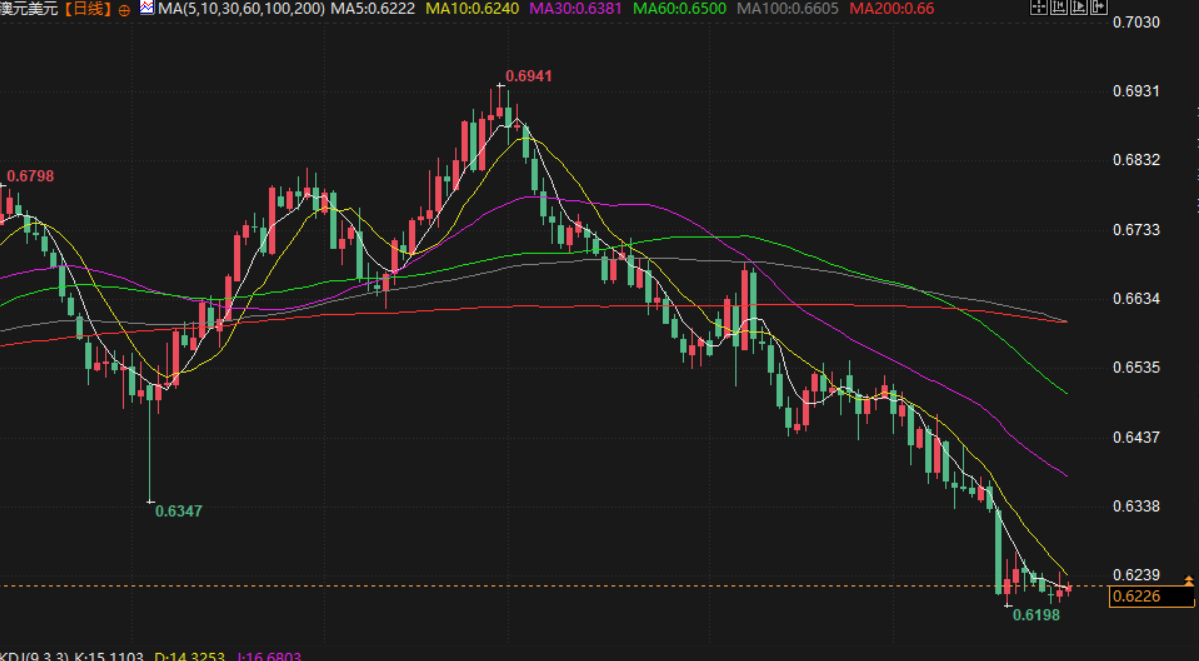 澳元和纽元对风险敏感的澳元和纽元走势不稳,徘徊在两年低点附近。澳元最新处于0.6229 美元左右,今年料将下跌 8.7%,创2018 年以来最弱年度表现。纽元在0.5644美元附近,2024年将下跌近11%,创2015年以来最弱表现。澳元与纽元度过艰难一年,未来将面临特朗普关税风险。