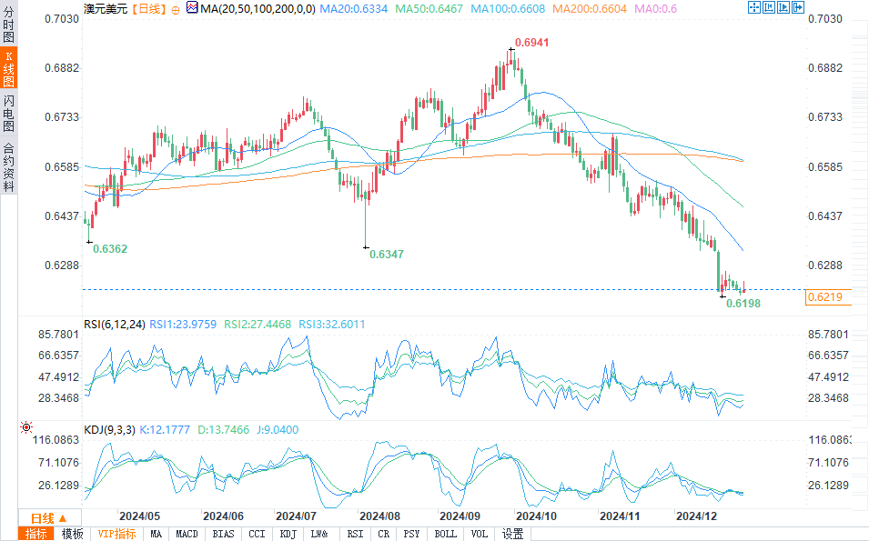 美元指数盘中V形反转,小幅走高。以下是对欧元/美元、美元/日元及澳元/美元的技术分析。